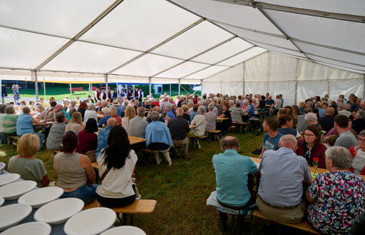 Sonntag, den 4. September 2022, 10:30 Uhr bei der Wegkappelle Ruopigen: Begleitet von frohem Geläut der Trychlen hatten knapp über 300 Besucher/innen im Festzelt bei unserem «Chäppeli» Platz genommen, zur Feier und zum Andenken an die Wiedererbauung der besagten Kapelle. Pünktlich begann der Gottesdienst der beiden Pfarreien Littau und Reussbühl. Mit für Jung und Alt anschaulicher und passender Predigt und einer stimmungsvollen Begleitung der Jodlerfründe Ruopige wurde der Festtag eröffnet. Viele altbekannte und neue Gesichter waren zu diesem schönwettrigen Anlass zusammengekommen, es wurde begrüsst und gelacht, gespiesen und getrunken, gespielt und gehüpft, geredet und gefreut – Ein schöner Anlass war’s, der nun bereits zum 30. Mal stattfand und dies gleich mit einem Besucherrekord.