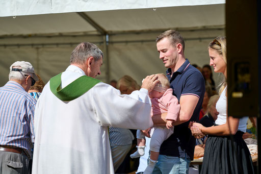 Nach dem Gottesdienst genossen die rund 230 Besucher/innen Feines aus unserer Festwirtschaft - mit knackigen Würsten, selbstgemachtem Kartoffelsalat und würzigem Chilli con Carne hatte es für jede/n etwas dabei. Der Duft des Essens vermischte sich mit fröhlichen Gesprächen, die sich an den Tischen entspannt entfalteten. Die jüngsten Teilnehmer hatten ihren Spass auf der Hüpfburg und mit den vielseitigen Spiele-Angeboten von der Ludothek Littau.